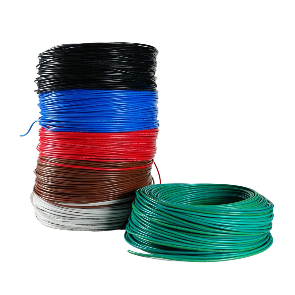 Conductor de cobre recocido flexible, formado por varios filamentos (alambres) de pequeño diámetro, aislado con PVC (Policloruro de Vinilo) auto extinguible y no propagante de llama, certificado bajo las normativas de seguridad y de calidad correspondientes.